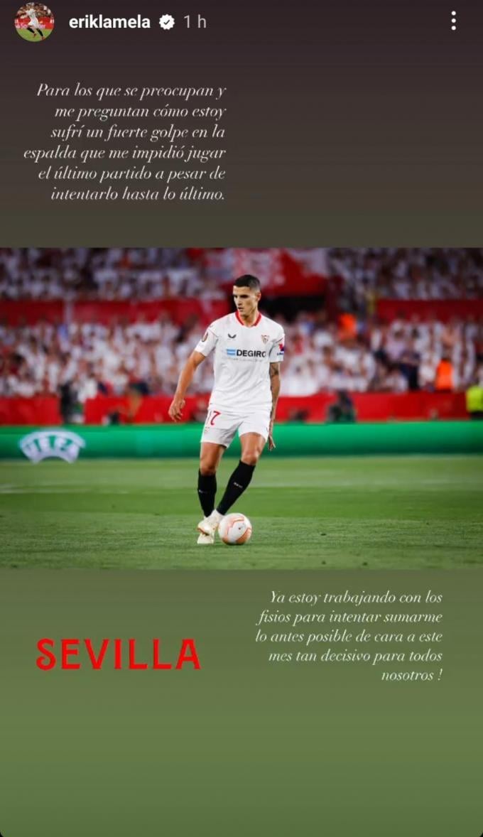 "Para los que se preocupan y me preguntan cómo estoy. Sufrí un golpe fuerte en la espalda que me impidió jugar el último partido a pesar de intentarlo hasta el final. Ya estoy trabajando con los físios para intentar sumarme lo antes posible de cara a este mes tan decisivo para todos nosotros", explicaba Lamela este mismo sábado a través de sus 'stories' de Instagram, agradeciendo las muestras de apoyo recibidas pero sin mojarse a la hora de dar una fecha aproximada para su regreso.