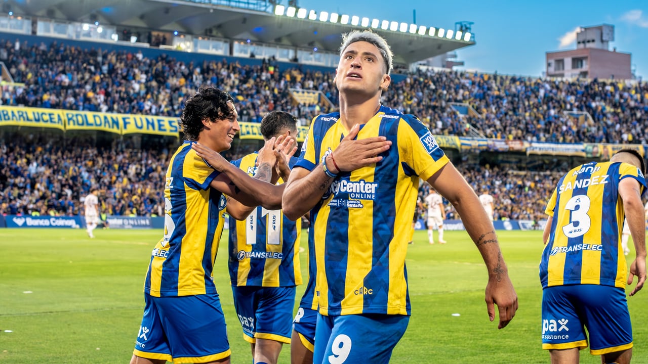 El de Gödeken celebra su tanto a Platense.@RosarioCentral