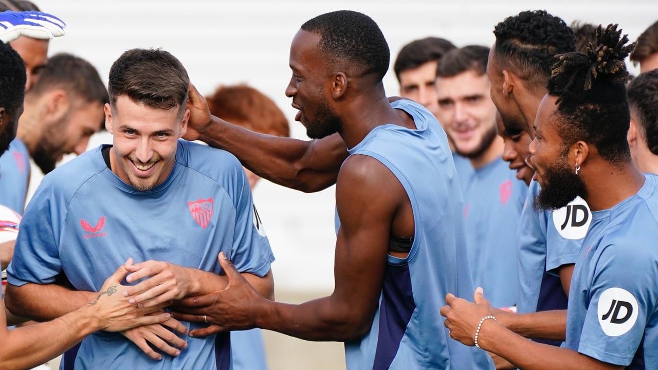 La novedad más significativa es la presencia de Pedro Ortiz como jugador del primer equipo a todos los efectos. El mediocentro mallorquín hereda el dorsal '8' de Joan Jordán. Esta mañana los compañeros le daban la enhorabuena con el habitual pasillo de collejas. Ya sabe lo que es debutar con el Sevilla en Primera división. Lo hizo en dos ocasiones: en la primera jornada de la temporada 21/22 ante el Rayo y en la 15 de la 22/23 frente al Celta de Vigo. Las dos últimas campañas jugó como cedido en el Vizela de la liga portuguesa, perdiéndose numerosos encuentros por lesión.