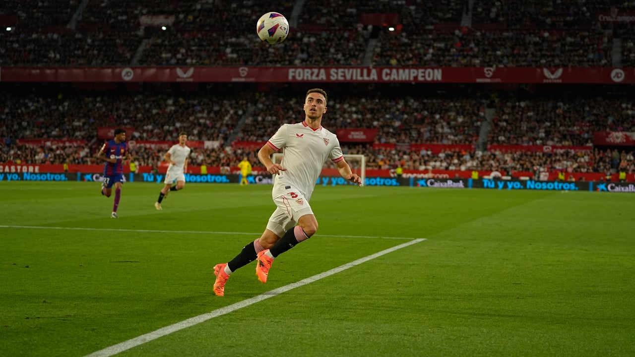 El lateral zurdo, que ha jugado "mucho más de lo que pensaba", pide "que los objetivos que se marquen, que son grandes porque es el Sevilla FC, se cumplan"