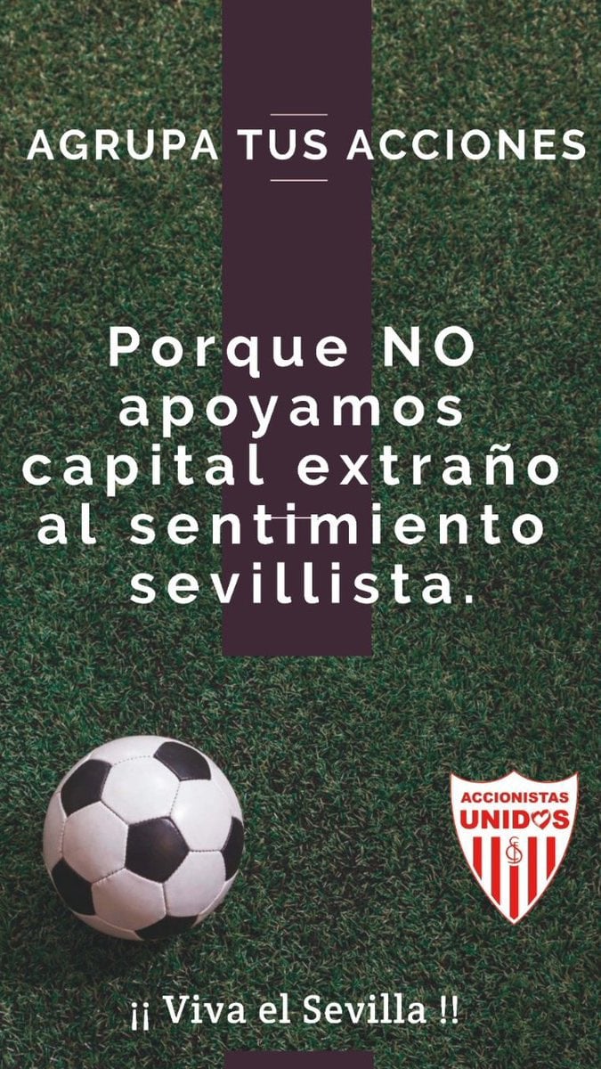 La entrada de un potente fondo inversor estadounidense se da prácticamente por hecha y eso preocupa muchísimo en las bases del Sevilla FC, que hasta ahora se habían mostrado tendentes a facilitar la opción de Antonio Lappí y Federico Quintero por ser la única que garantiza arraigo, aunque también es la oferta más baja de las presentadas. En medio de "la incertidumbre" generada por este contexto, este mismo miércoles han anunciado el nacimiento de una agrupación para hacer de oposición frontal al desembarco de capital extranjero ante el temor de que objetivo sea especular con el patrimonio nervionense.