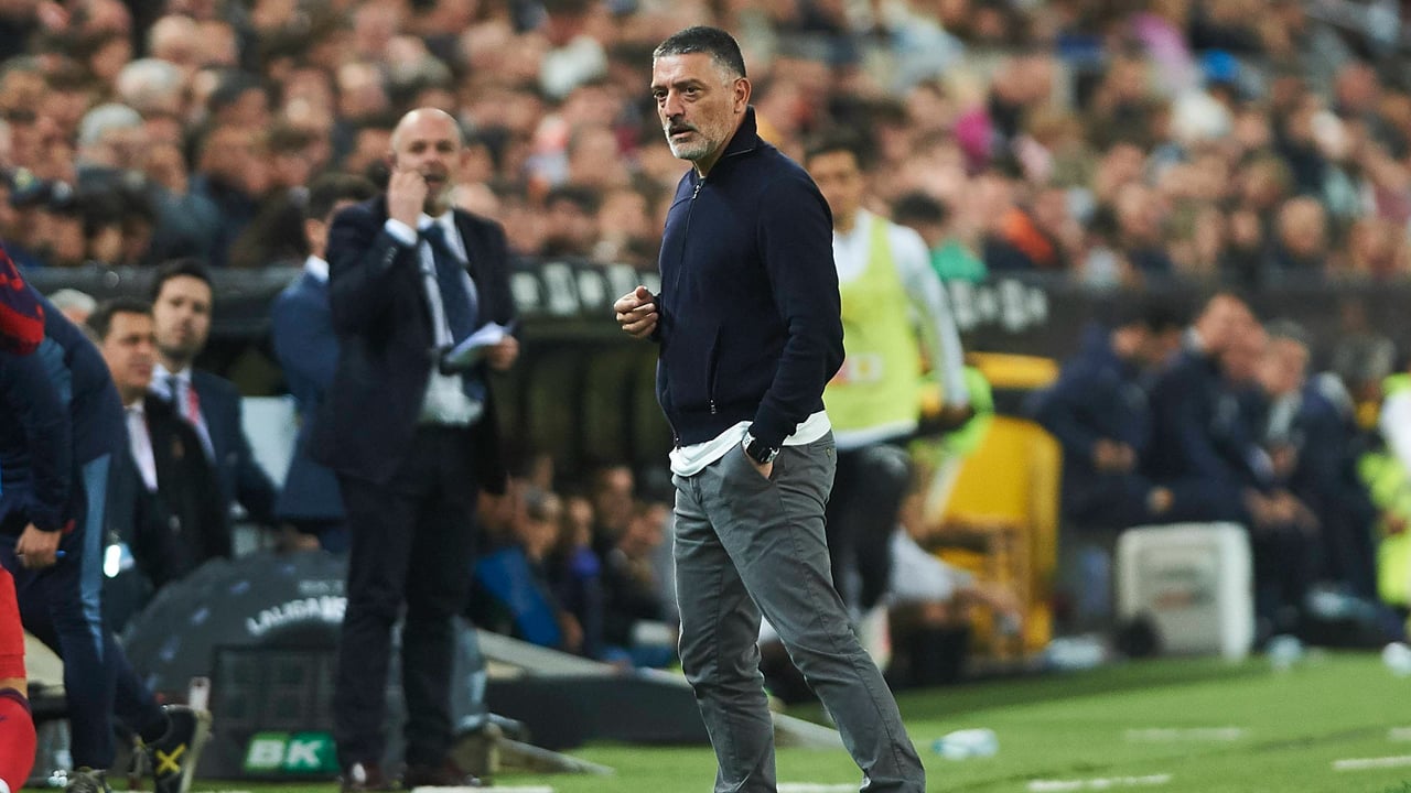 El míster blanquirrojo, cariacontecido este viernes en Mestalla.CORDON PRESS