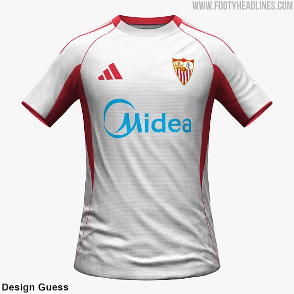 Ahora, la página especializada 'Footyheadlines.com' ha esbozado cómo se espera que sea la nueva camiseta blanquirroja, a tenor de informaciones filtradas que ya han desvelado las posibles equipaciones principales de dos equipos señeros bajo las tres bandas oblicuas, el Liverpool y el Real Madrid. La base sobre la que se desarrolle la vestimenta nervionense será la denominada Adidas Tiro 25, que debe estar lanzada y lista para ser adquirida el próximo mes de julio, por lo que, por imperativo de tiempo de fabricación y despacho desde Tailandia y China, los diseños han sido seguramente ya aprobados por los representantes de marketing de la entidad de Eduardo Dato. Si la de los 'reds' conservaría las clásicas rayas blancas en los hombros, la del Sevilla FC y los merengues tendría sólo unas líneas más finas, de color rojo en el caso hispalense, más otras dos que delimitarían de arriba a abajo el tórax, con la bocamanga, los costados y el interior de las axilas igualmente 'manchados' de este color.