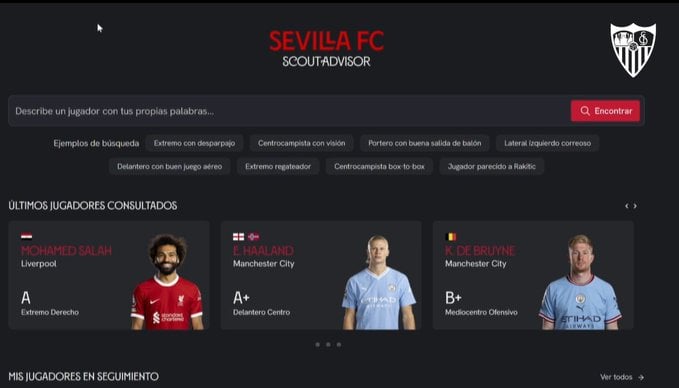 El Sevilla FC parte de una descripción en lenguaje natural e identifica jugadores por características significativas, como pueden ser datos financieros, físicos, cinemáticos, técnicos y tácticos afines a sus intereses como equipo. Esto implica tener una herramienta que comprenda e identifique lo que se está buscando. Zamora pone un ejemplo: "Si es un delantero de referencia, la IA comprende que es alto, fuerte, que va bien de cabeza, sujeta a los centrales, puede generar segundas jugadas, etcétera, y ve en qué reporte mis expertos lo han identificado. Ya no tengo que leer 200.000 de ellos, sino apenas siete".
