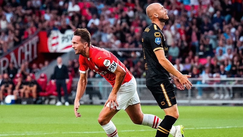 De Jong abrió el marcador a los veintiún minutos de juego tras cabecear a las redes un centro de Jordan Teze y cerró la cuenta (3-0) para el PSV en el 53 al aprovechar otro pase de Teze.