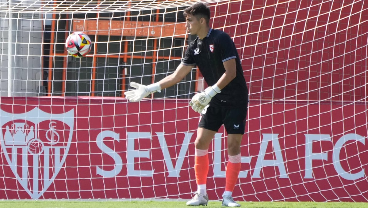 Con sólo 23 años, el portero canterano lleva cinco temporadas en el Sevilla Atlético y en los últimos cuatro ha sido un habitual en los entrenamientos del primer equipo. El club estudia números y echa cuentas