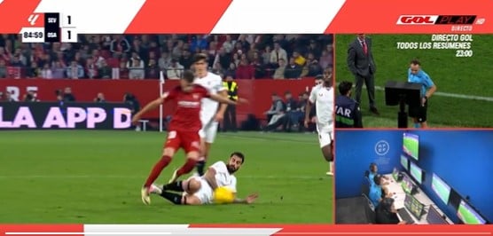 Cuadra Fernández le hizo caso y tras revisar la jugada repetida en varias ocasiones tomó la decisión de anular la amarilla y enseñarle la roja directa, lo que dejó al Sevilla con un menos en el minuto 86, cuando necesitaba buscar el tanto de la victoria. Una expulsión que se puede considerar rigurosa a tenor de la falta de intencionalidad de Suso.