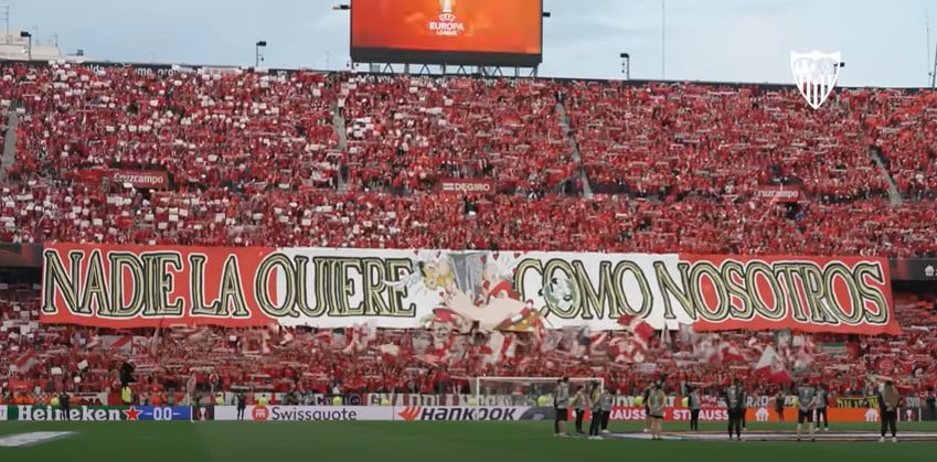 Por eso la afición lo vivió tan a flor de piel. Desde el recibimiento al autobús a la llegada al Ramón Sánchez-Pizjuán, hasta dentro del estadio, donde miles de aficionados entraron con mucha antelación para empezar a animar ya desde el calentamiento de ambos equipos. Con la salida de Sevilla y Juventus al campo ya para empezar el partido se desplegaba el tifo desde Gol Norte. 'Nadie la quiere como nosotros', se podía leer y así lo demostró el Sevilla durante 120 minutos.