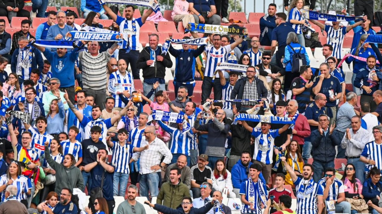 Eran casi mayoría, pues, de los 1.975 espectadores que presenciaron en directo este Viernes de Dolores el Sevilla Atlético-Recreativo de Huelva de la jornada 32ª en el Grupo 2 de Primera RFEF, alrededor de 900 eran seguidores del Decano, que dieron color y calor a la grada secundaria del Estadio Jesús Navas. Históricamente enfrentados con la entidad nervionense por aquello de las fundaciones de uno y otro, los pupilos de Jesús Galván parecían jugar a domicilio. Como registraron varios usuarios de Tiktok, los seguidores albiazules recibieron con gritos e insultos a los futbolistas locales ya cuando éstos calentaban sobre el césped, con alguna alusión al eterno rival, el Real Betis, para fastidiar. Cada acción errada por su anfitrión y cada oportunidad de que disponían los de Iñigo Vélez eran jaleadas desde la zona ocupada por el público foránea, que hizo algún amago de invasión.