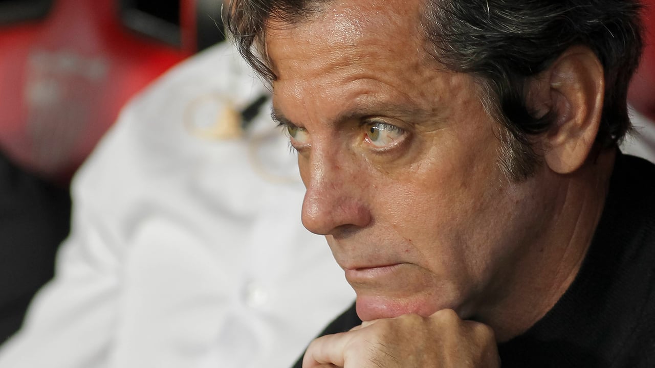 El míster nervionense, con nuevo look estos días, este lunes en su banquillo con gesto serio.CORDON PRESS