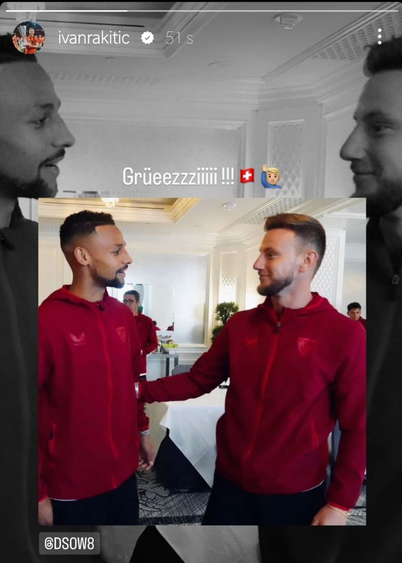 Así las cosas, mientras los responsables de marketing y redes sociales de la entidad hispalense preparaban los clásicos montajes audiovisuales del anuncio, Rakitic filtró sin querer una imagen de ambos en la concentración de Estados Unidos, junto al típico saludo de los cantones suizos de habla alemana: ¡Grüezi!. Aunque Ivan ha sido internacional por Croacia, nació en la localidad helvética de Möhlin (Argovia), de tradición germanófona como Djibril, natural de Zurich pese a su ascendencia senegalesa. La imagen fue retirada por el autor, acelerando seguramente la publicación, primero, de una siembra (traducción al inglés del apellido del protagonista), y, luego, de sendos vídeos del centrocampista defensivo vestido con sus nuevos colores.