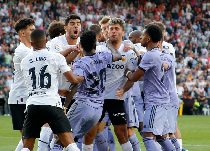 Sobre el partido en Mestalla contra el Valencia, denuncia: "En la jornada 35, De Burgos Bengoetxea volvió a ser protagonista. Primero por no suspender el partido ante los graves y reiterados insultos racistas a Vinicius. A pesar de la grave situación el partido continuó. Y en la misma línea, Vinicius tuvo que ver como un penalti que le hizo Lato no fue señalado e incluso sufrió una agresión. Al final fue él quien terminó expulsado, ¡increíble! Y para terminar aquel partido tampoco señaló un clarisimo penalti sobre Benzema".