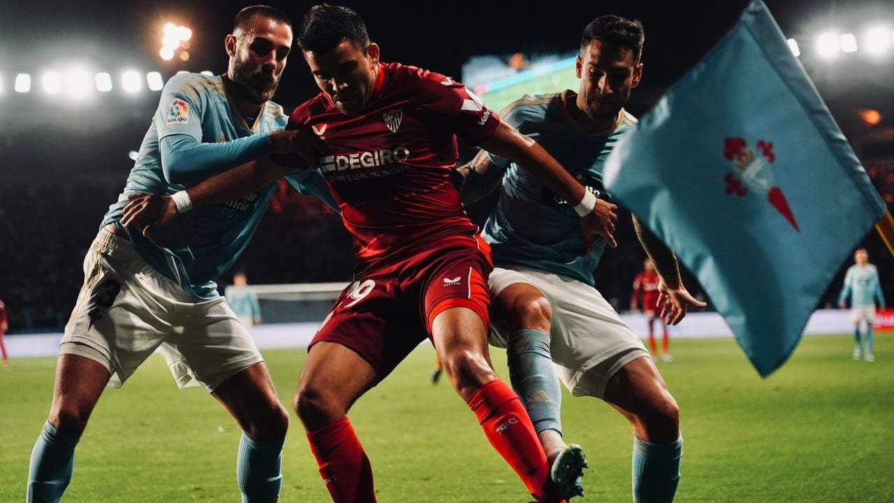 El lateral izquierdo del Sevilla, pese a que sigue conviviendo con sus molestias de pubis, fue el mejor futbolistas blanquirrojo en Balaídos