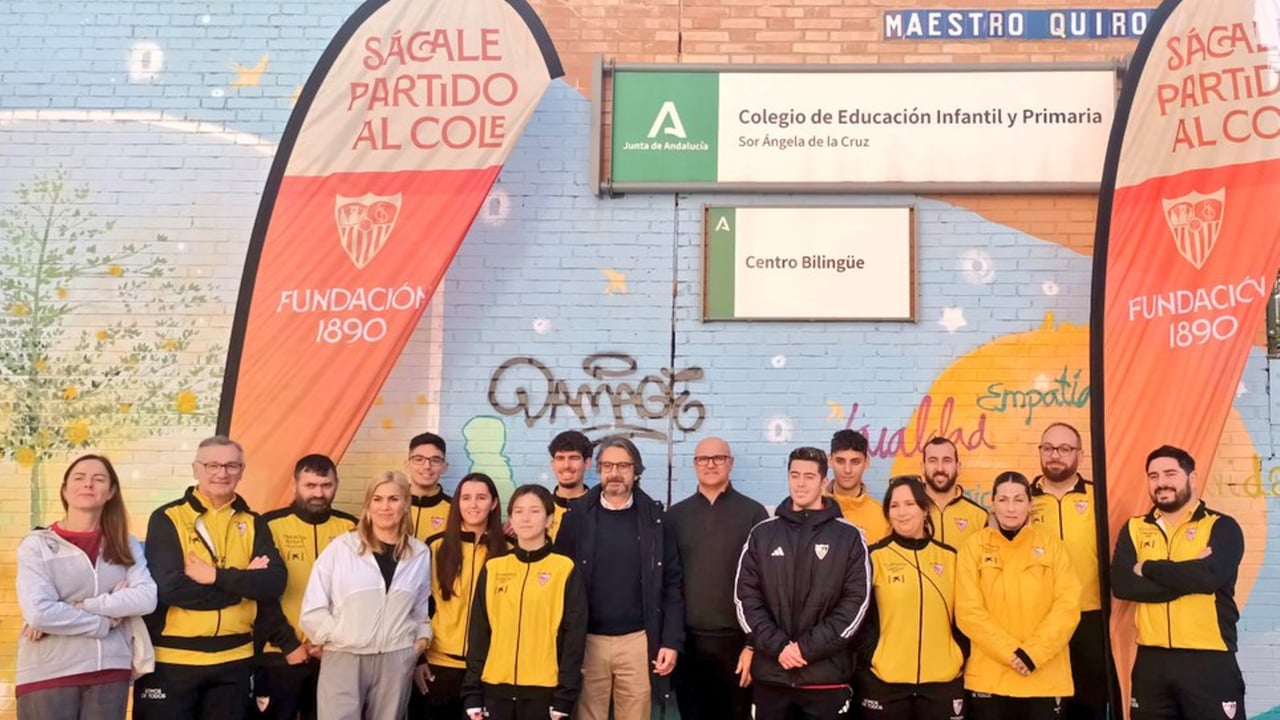 Un año más, el Sevilla FC muestra su lado más humano y social con uno de los programas más aplaudidos y consolidados de la Fundación 1890: 'Sácale partido al cole'. Este miércoles, con la visita al CEIP Sor Ángela de la Cruz, se ha estrenado la XIX Edición, que llegará a más de 2.000 alumnos de diferentes centros educativos de la provincia sevillana. Con 'Sácale partido al cole', la fundación de la entidad nervionense pretende transmitir a los niños de Primaria valores inherentes al deporte como la tolerancia, el respeto a las diferencias, la constancia, la búsqueda de superación personal, el disfrute por el juego o el cumplimiento de las reglas.
