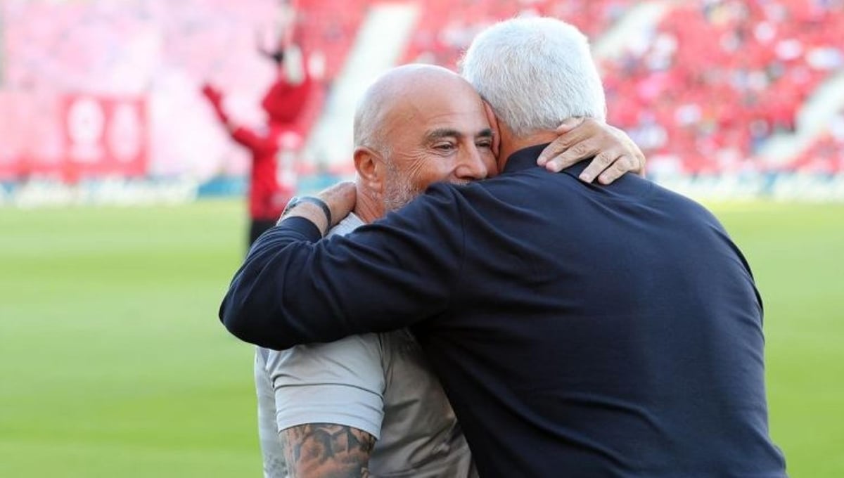 Abrazo entre el míster argentino y Javier Aguirre.LaLiga