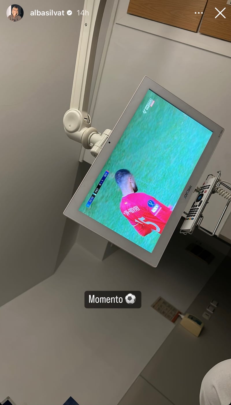 Como antiguo sevillista y gran amante del club, ni Sergio Rico ni su pareja Alba Silva iban a perderse el importante encuentro aunque se encuentren en el hospital. La mujer del futbolista compartió en Instagram una ‘storie’ donde mostraba que ambos estaban disfrutando del encuentro desde la habitación donde se encuentra ingresado el futbolista.