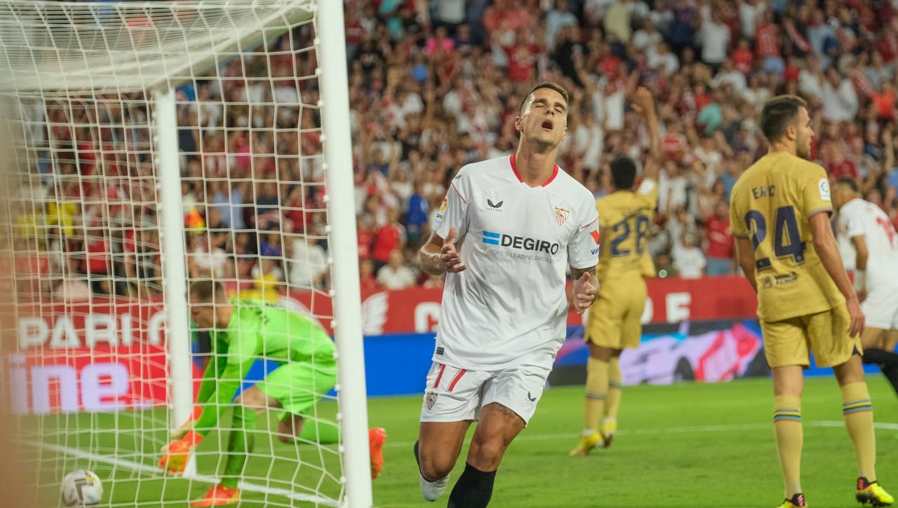 Tercera derrota en cuatro jornadas del Sevilla FC. Un punto de 12 para los de Lopetegui, de nuevo retratados en las áreas por un Barcelona (0-3) que comenzó dubitativo, merced al buen hacer en el achique de los andaluces, pero que asestó dos golpes letales antes del descanso, primero a la contra y luego sorprendiendo con un pase frontal, de los que ya no se levantó su anfitrión. La mandíbula de cristal a la que hacía referencia el técnico vasco, que no ha mejorado tras el cierre del mercado veraniego, al menos de momento. Al poco de la reanudación, ya no hubo historia, aunque la sentencia pudo llegar antes si Dembélé hubiera estado menos 'chupón' o si Bono no hubiese reaccionado tan bien ante un Lewandowski que sólo ve ya el Trofeo Pichichi entre ceja y ceja.
