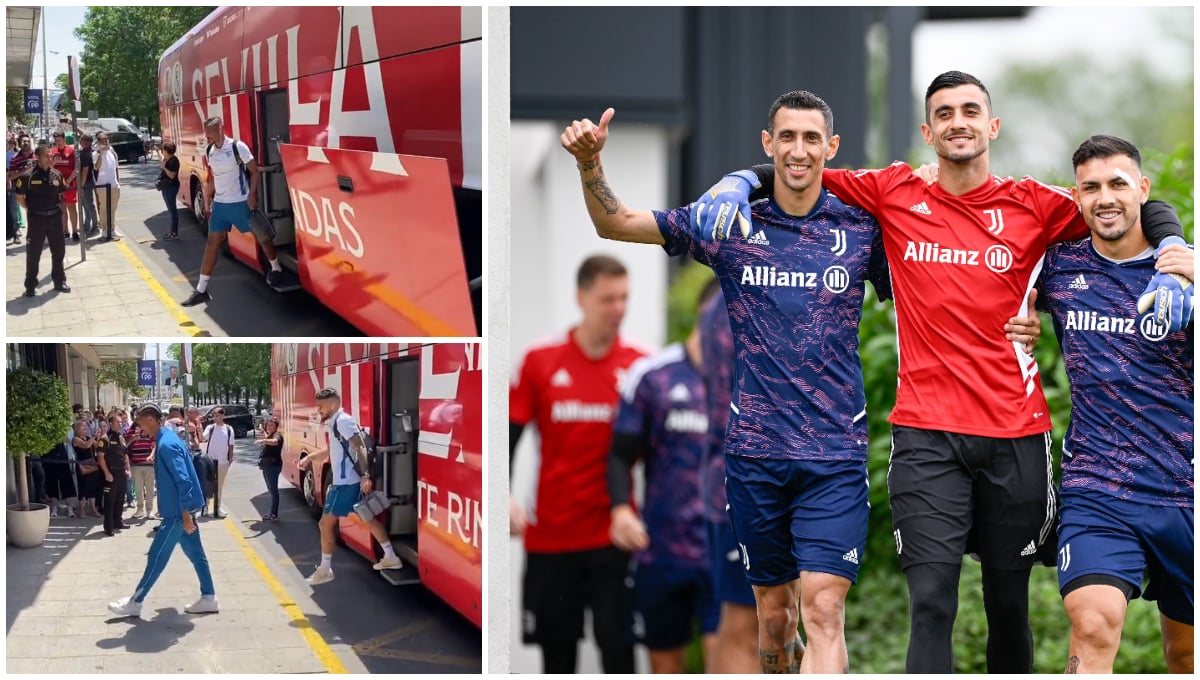 Mientras, el Sevilla FC vela armas en un hotel situado a sólo un kilómetro del Ramón Sánchez-Pizjuán, en la zona del Parque de María Luisa. Su habitual centro de operaciones en los días grandes, justo enfrente del estadio, está en obras y los nervionenses han cambiado de lugar de hospedaje. Hasta allí llegó el autobús del equipo de Mendilibar en torno a las 13:00 horas y pudo testar la emoción que se respira en el seno del sevillismo. Un nutrido grupo de aficionados esperaban su llegada para recibirle con vítores y jalearle para seguir soñando con la Séptima. La plantilla blanquirroja, que ya ha expresado que está tan ilusionada y motivada como su hinchada, comió nada más llegar y gozará de unas horas de descanso antes de bajar al salón de actos, donde conocerán el once inicial ante la Juve y recibirán las últimas instrucciones.