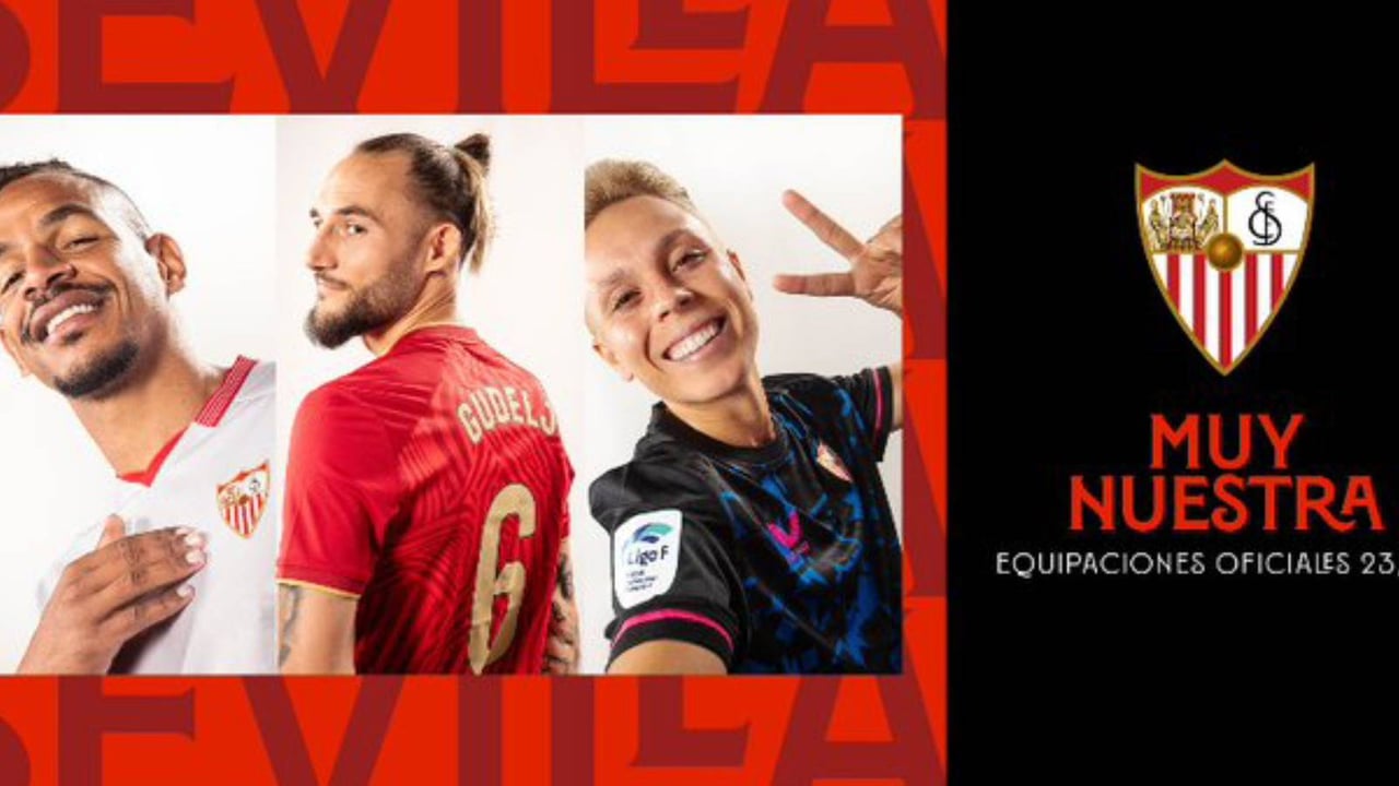El Sevilla presenta sus tres camisetas para la temporada 2023-24