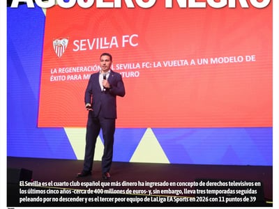 El club nervionense es el cuarto club español que más dinero ha ingresado en concepto de derechos televisivos y, sin embargo, lleva tres años seguidos peleando por no descender. En lo que va de 2026, sólo hay dos equipos de LaLiga EA Sports que hayan obtenido menos puntos que los nervionenses