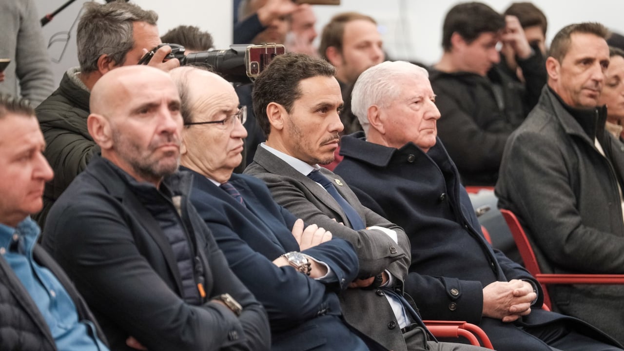 La plana mayor nervionense, durante la presentación de los fichajes invernales.Lince