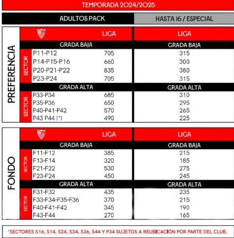 En cuanto a la cesión de abonos, el Sevilla ha informado de una novedad, pues el abonado tiene la posibilidad de ceder su asiento hasta conseguir el 100% del precio.