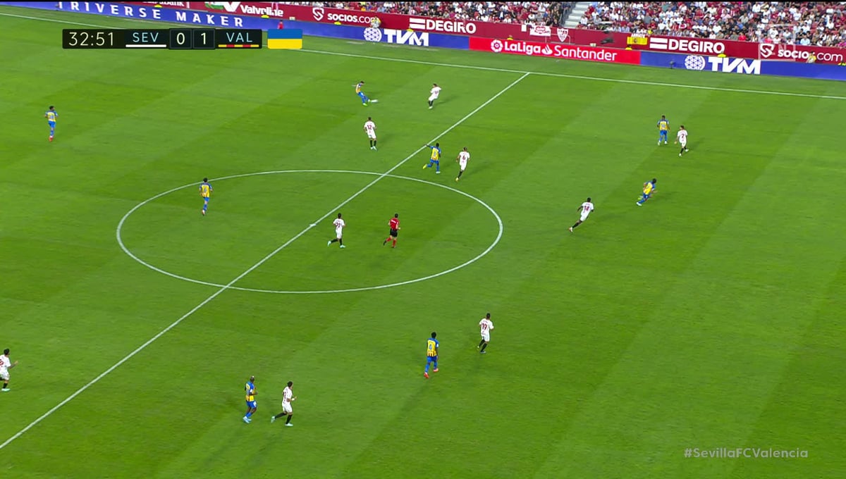 El golpe en la mesa del conjunto de Sampaoli buscaba reclamar la iniciativa y reenganchar a la grada, un poco fría tras el 0-1, aunque volcada de nuevo con los suyos enseguida. El gran problema, con todo, seguía estando atrás. De un lado, el Valencia lo remataba todo por alto sin casi oposición, ganando la espalda fácilmente a los centrales, al tiempo que las pérdidas en la salida estuvieron a punto de costar caro. José Ángel, que enmendó rápido su primer error, no pudo evitar que Lino castigase el segundo, en el ecuador de esta fase, evitando Bono, con una gran estirada abajo, el segundo. Primeros pitos, fruto de la impaciencia de una afición que seguía a estas alturas sin ver un solo triunfo de su equipo en la temporada 22/23. El de Casilda tomó el camino más fácil, sentando al '30' para dar entrada a Navas cumplida la media hora. Salió en demasiadas fotos en tan poco tiempo el visueño, aunque había otros coladeros con más peso.