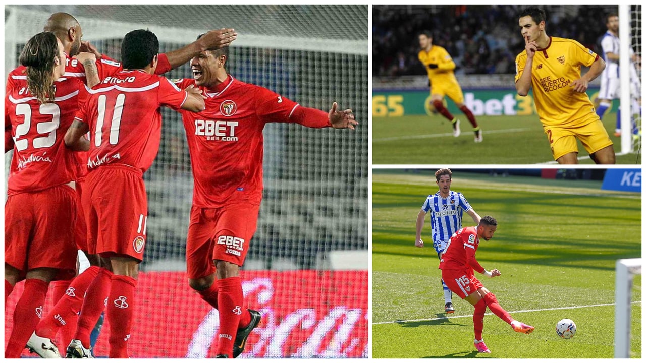 En la 2005/2006 se impuso por 1-2 (Jordi López, en propia meta; Jesús Navas y Pep Lluís Martí); en la 2006/2007 firmó un 1-3 (Díaz de Cerio; Renato, Kanouté y Dragutinovic) y en la 2010/2011, tras un periplo de la Real Sociedad en Segunda, venció por 2-3 (Diego Rivas y Joseba Llorente; Kanouté -2- y Luis Fabiano). La séptima victoria en Anoeta volvió a hacerse de rogar. Hubo que esperar a la 2016/2017, cuando un 'hat-trick' de Ben Yedder y un gol de Sarabia dieron el 0-4 que a día de hoy es, de lejos, el marcador más abultado a favor de los nervionenses.