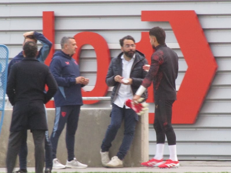 Por un lado, el presidente José María del Nido Carrasco y el director deportivo Víctor Orta acudieron a presenciar de cerca la sesión. Tan unidos como de costumbre, los altos cargos sevillistas recibieron a los componentes del cuerpo técnico que acudieron desde la zona del Campo A en la que estaban ubicados. Largo rato mantuvieron dialogando junto al entrenador asistente, Álex García antes del comienzo de la sesión. Poco después de recibir de manera afectuosa a Nyland o Álvaro Fernández, sendos mandamases se encontraron con García Pimienta. En esa aproximación despejaron las pocas dudas que hubiesen acerca de hipotéticas fricciones en su relación. En este sentido, tal y como captaron las cámaras de ESTADIO Deportivo, se fundieron en un sentido abrazo.
