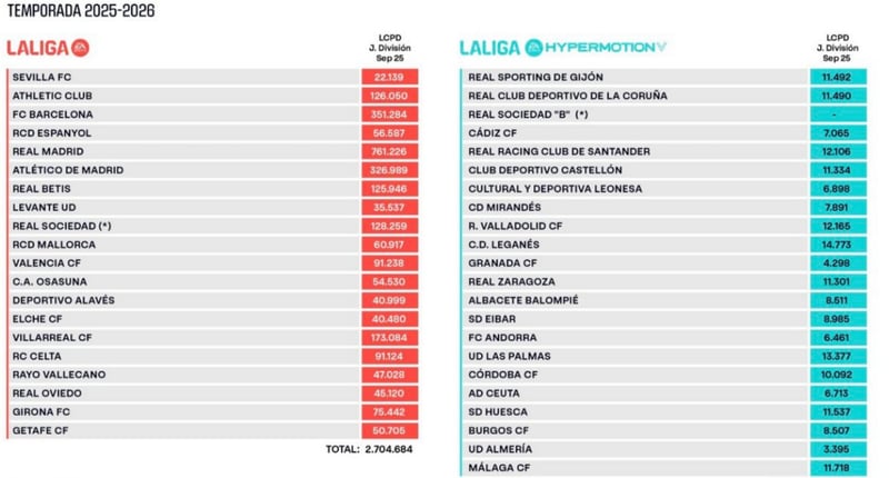 Esta mañana, LaLiga, por medio de un acto telemático, ha anunciado los límites de coste de plantilla deportiva (LCPD) para todos los clubes de Primera y Segunda división. Dicho límite establece lo que un club se puede gastar en jugadores, primer entrenador, segundo entrenador y preparador físico del primer equipo y cantera y otras secciones.