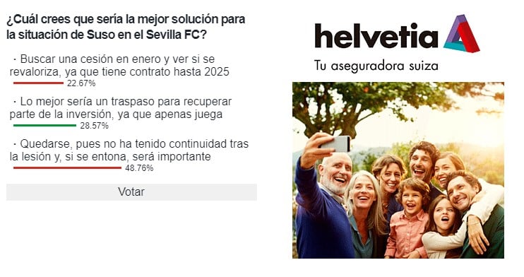 De momento, Monchi habría comunicado ya a los agentes de Januzaj, Papu Gómez y Acuña que deben buscarse acomodo. Con ellos tres podría bastar, aunque los nombres del gaditano, Rakitic, Isco, Delaney o Dolberg están también subrayados. No parece haber una decisión firme, una variedad de opiniones que se refleja igualmente en la encuesta propuesta por ESTADIO Deportivo a sus lectores. La opción más votadas defiende su continuidad a la espera de que vuelva a ser mismo (48,76%), pero ganarían en conjunto los que verían mejor su marcha, bien en forma de traspaso (un 28,57%) para recuperar algo de inversión realizada en su día (22 kilos en total) o como cedido, por si se revaloriza (22,67%).