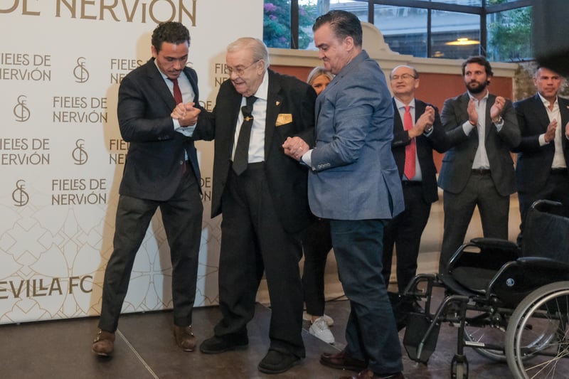 El Sevilla FC celebró este martes 25 de junio la edición 2024 de su tradicional acto 'Fieles de Nervión', cita en la que llegaron a reunirse hasta 8.000 socios que superaban los 25 años de antigüedad, pero que la entidad blanquirroja ha reducido esta vez a unos 500, centrándose en quienes celebraban la efeméride de las Bodas de Plata, Oro, Diamante y Brillantes. Tras un homenaje privado en el antepalco de Ramón Sánchez-Pizjuán, los trece abonados homenajeados recibieron un baño de masas en un conocido restaurante aljarafeño, donde tuvo lugar luego una cena privada. Los mayores aplausos los acaparó Julián Hernández, socio número 2 y quien puede presumir de 75 años de carnet. El presidente abogaba hace unos días por recuperar "la esencia" del evento, aunque otros lo achacan a su intención de minimizar a los críticos, que organizaron una reunión alternativa, 'Unidos por el escudo'.