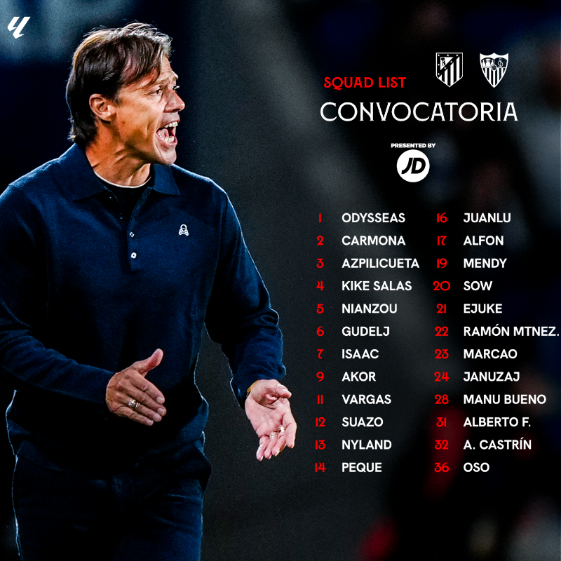 Citación completa del Sevilla FC para medirse con el Atlético de Madrid