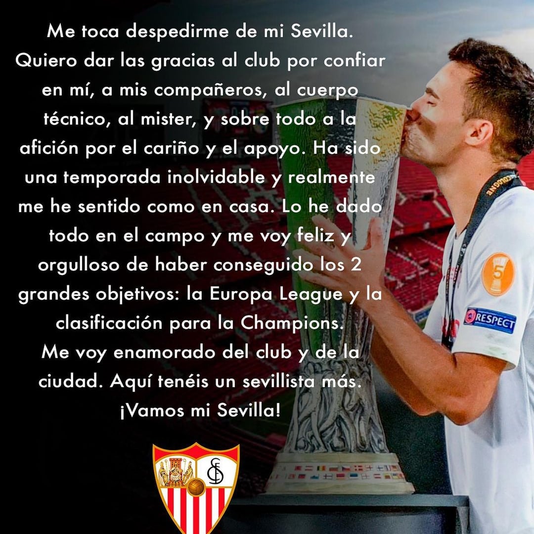 El Sevilla FC sigue negociando un posible traspaso de Jules Koundé, una compleja e interminable operación de que no sólo están pendientes en Nervión, sino también todos aquellos futbolistas que tienen un principio de acuerdo con Monchi a la espera de que la entidad disponga de ingresos para equilibrar las cuentas y acometer varias operaciones. Todo apunta a que una de las primeras será la del fichaje de Sergio Reguilón, de cuyo futuro inmediato había una reveladora pista en el perfil de Instagram de su pareja, Marta Díaz.
