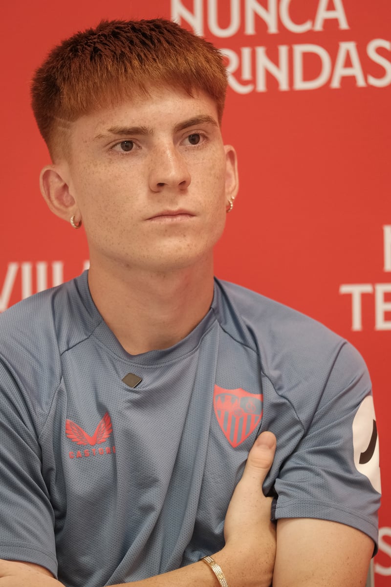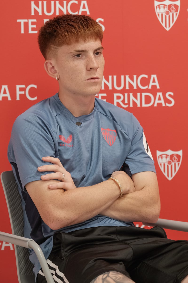 - ¿Es su idea continuar muchos años en el Sevilla?- Bueno, yo acá estoy una temporada. Pero bueno, sí, la ciudad es muy linda. El club es hermoso, como dije antes. Y bueno, la afición, la verdad que me encantó. Es muy parecida a la de Argentina, a la de Boca. Así que nada, espero hacerlo muy bien esta temporada.