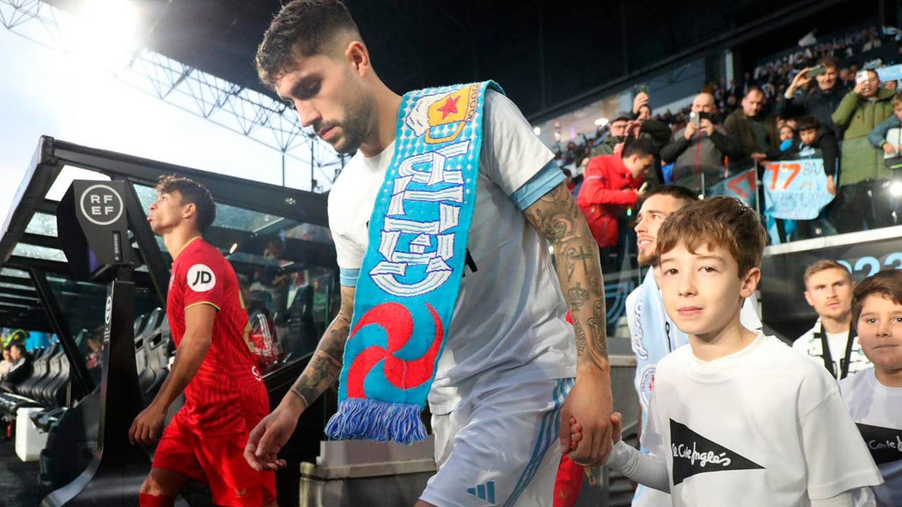 La salida a Balaídos de Celta y Sevilla este curso, con el monitor del VAR al fondo; terminaría siendo derribado por Iago Aspas.CORDON PRESS