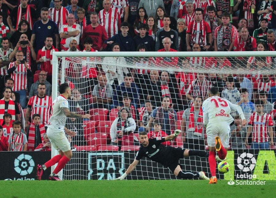 Lucas Ocampos, autor del único tanto del partido, Marko Dmitrovic y Papu Gómez fueron los tres jugadores del Sevilla Fútbol Club que pasaron por la zona mixta de San Mamés. El primero de ellos fue el hombre del partido, un Lucas Ocampos que destacaba la importancia del triunfo para Movistar. "Este campo, con esta gente y con estos jugadores siempre es complicado, por eso están donde están, nos costó mucho pero nos llevamos tres puntos súper importantes", reconocía el argentino, que explicaba así la acción del penalti: "Llegamos los dos al mismo tiempo, la levanto un poquito y él toca el balón pero me acaba arrastrando la pierna, no sé si fue penalti, pero si lo cobró es que lo fue".