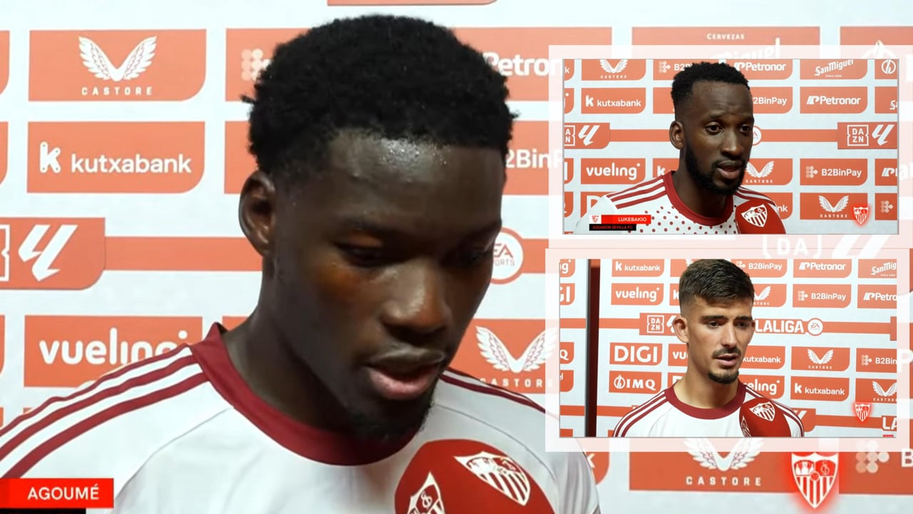 Agoumé, Kike Salas y Dodi Lukebakio atendieron a los medios oficiales del Sevilla tras el choque y reseñaron la "reacción de la segunda parte" como aspecto positivo de la derrota