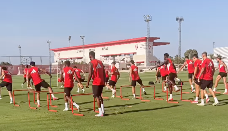 Las bajas siguen siendo, por tanto, las mismas, pues no regresarán, como muy pronto hasta el mes que viene, si no octubre, ni Tanguy Nianzou ni Joan Jordán. Además, Loïc Badé y Chidera Ejuke continúan con sus respectivos procesos de recuperación de sendas dolencias musculares que dejan seriamente en entredicho su presencia en las primeras jornadas. Igual que todo el verano, aprovechando que la base de operaciones sigue siendo el recinto que alberga el Estadio Jesús Navas, se ejercitaron con los mayores un buen número de componentes del filial y el juvenil, casos de Alberto Flores, Ramón Martínez, Andrés Castrín, Alberto Collado, Joaquín Martínez 'Oso', Nico Guillén, Pablo Rivera, Edu Altozano o Lulo Dasilva, quienes compensan el rol de los descartados (que no apartados) Álvaro Fernández, Adnan Januzaj y Rafa Mir.