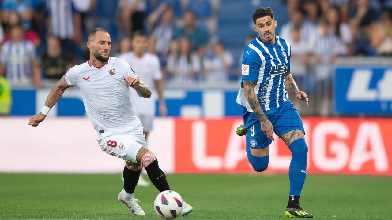 Miguel de la fuente pelea por el balón con Nemajna GudeljTwitter / Miguel de la Fuente