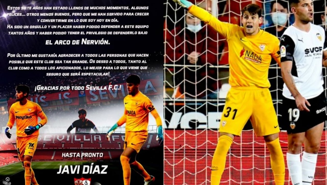 El guardameta Javi Díaz se despedía ayer del Sevilla Fútbol Club, la que ha sido su casa durante las últimas siete temporadas. El canterano, que ha ejercido como tercer portero del primer equipo en las últimas temporadas, finalizaba contrato el 30 de junio y ahora emprenderá una nueva aventura profesional.