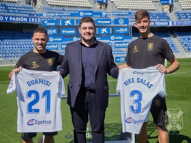 El conjunto tinerfeño ha presentado en el día de hoy a sus dos últimos refuerzos, el sevillista Kike Salas, que llega cedido hasta final de temporada, y el exbético Riza Durmisi, que sigue perteneciendo a la Lazio desde que el Betis se lo vendiera en 2018 pero que este mes canceló su préstamo al Leganés para fichar por el Tenerife. Una presentación, sin duda, con mucho aire sevillista y bético.