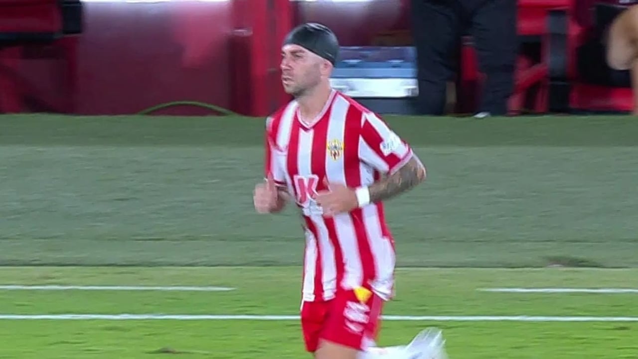Para que no fuera a mayores y pudiera continuar en el partido. Adri Embarba fue atendido por los servicios médicos que lo curaron y le pusieron un gorro de natación para impedir que la sangre fuera a mayores. El extremo del Almería dejó una de las imágenes más curiosas de esta jornada 6 de LaLiga.