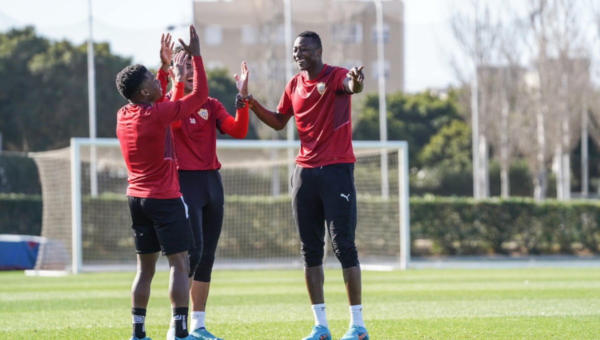 El Almería salta a los primeros entrenos con camisetas sin marca y demora el anuncio de Castore