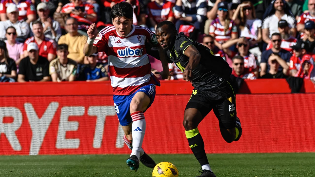 Bruno Langa, pujando por un balón frente al GranadaCordon Press