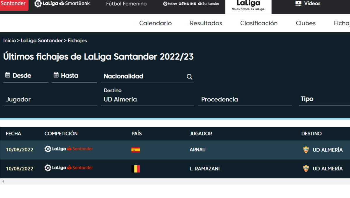 La UD Almería no es el único equipo que aún no ha inscrito a sus fichajes. Tanto el FC Barcelona como el Real Betis tampoco lo han hecho aún. El equipo de Turki ha inscrito a Arnau Puigmal y a Ramazani, ya que ambos figuraban la temporada pasada como jugadores del filial. Por lo tanto, no se les pueden considerar como tales fichajes de esta temporada.