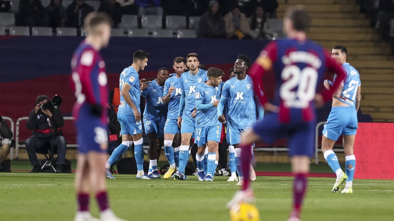Jugadores del Almería en el duelo ante el BarçaCordon Press