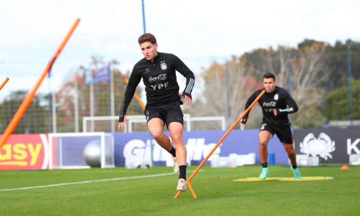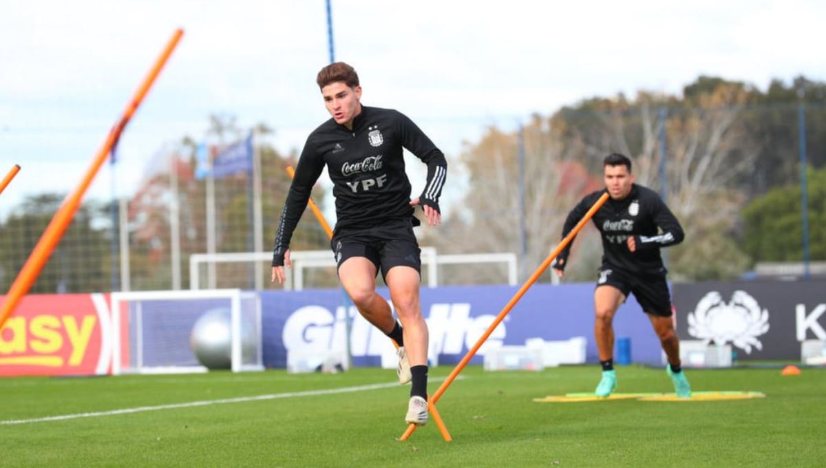 Julián Álvarez, en un entrenamiento.Archivo