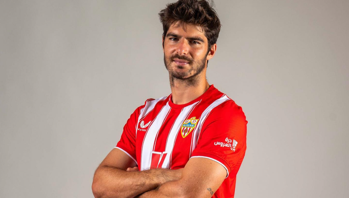 El centrocampista de la UD Almería habló en la sala de prensa del Estadio de los Juegos Mediterráneos sobre su situación personal y la del club