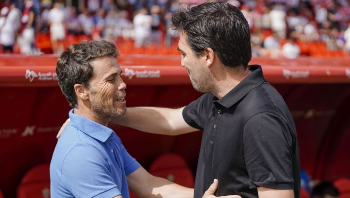 Rubi saludando a Iraola en el encuentro de hoyLaLiga